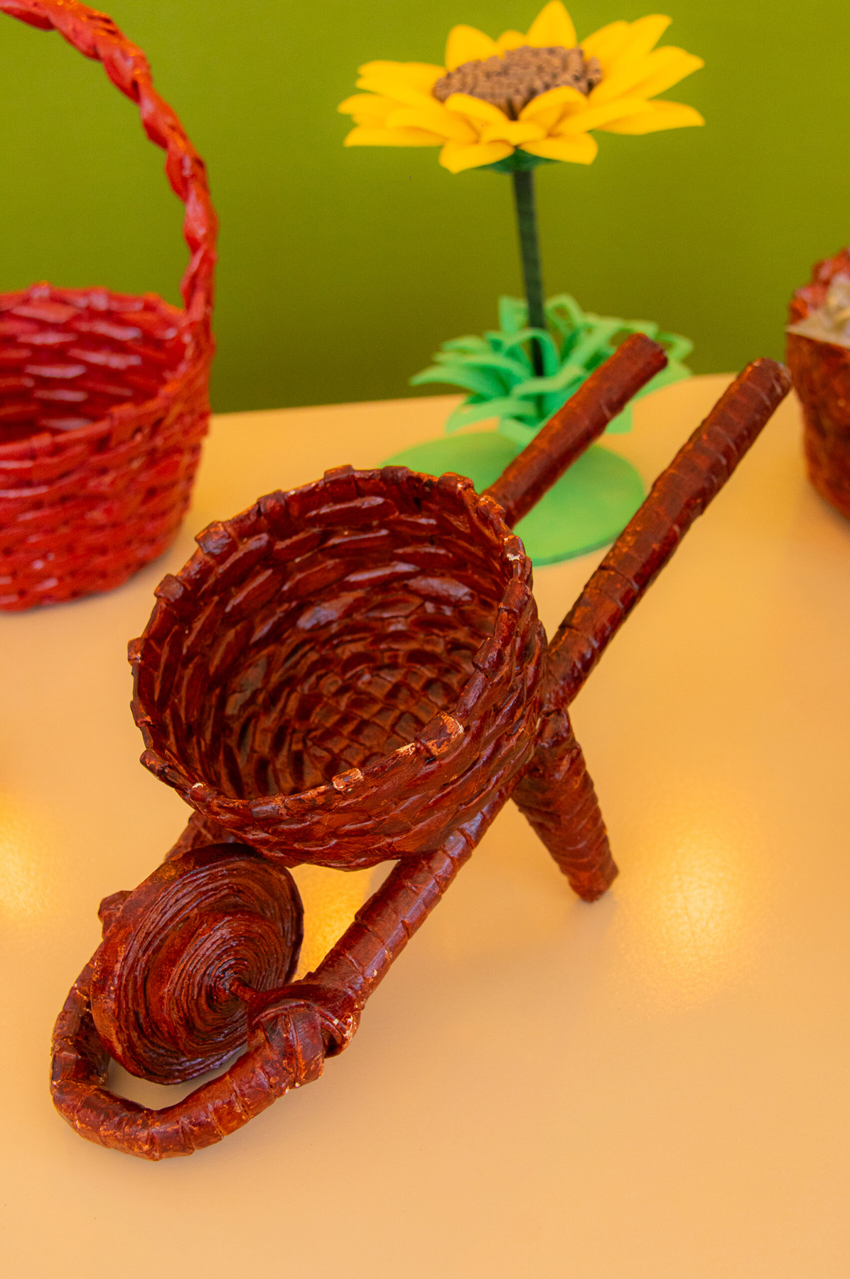 Criação de peças decorativas, como cestas, chaveiros, ecobags e presentes personalizados. Produtos temáticos com inspiração na fauna e flora do Parque Estadual do Rio Doce e na Rota Vales dos Tropeiros. Oficinas de artesanato aos visitantes e cicloturistas, conforme demanda e agendamento prévio.