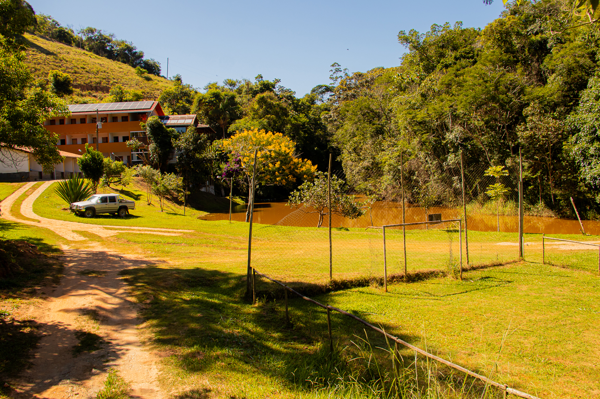 Hospedagem: Quartos confortáveis com opção de pensão completa nos fins de semana e feriados prolongados. Estrutura de lazer: Piscinas, campo de futebol society, quadra de tênis em saibro, bica d’água e mesas de sinuca e totó. Gastronomia mineira: Pratos típicos preparados com ingredientes frescos, remetendo ao sabor caseiro da “casa da Vovó”. Eventos: Organização de seminários, retiros e reuniões com infraestrutura completa e personalização. Atividades guiadas: Caminhadas até o Santuário da Cruz, com história e cultura local. Experiência “Conheça Alfié”: Roteiro especial que inclui café da manhã típico e imersão na cultura local.